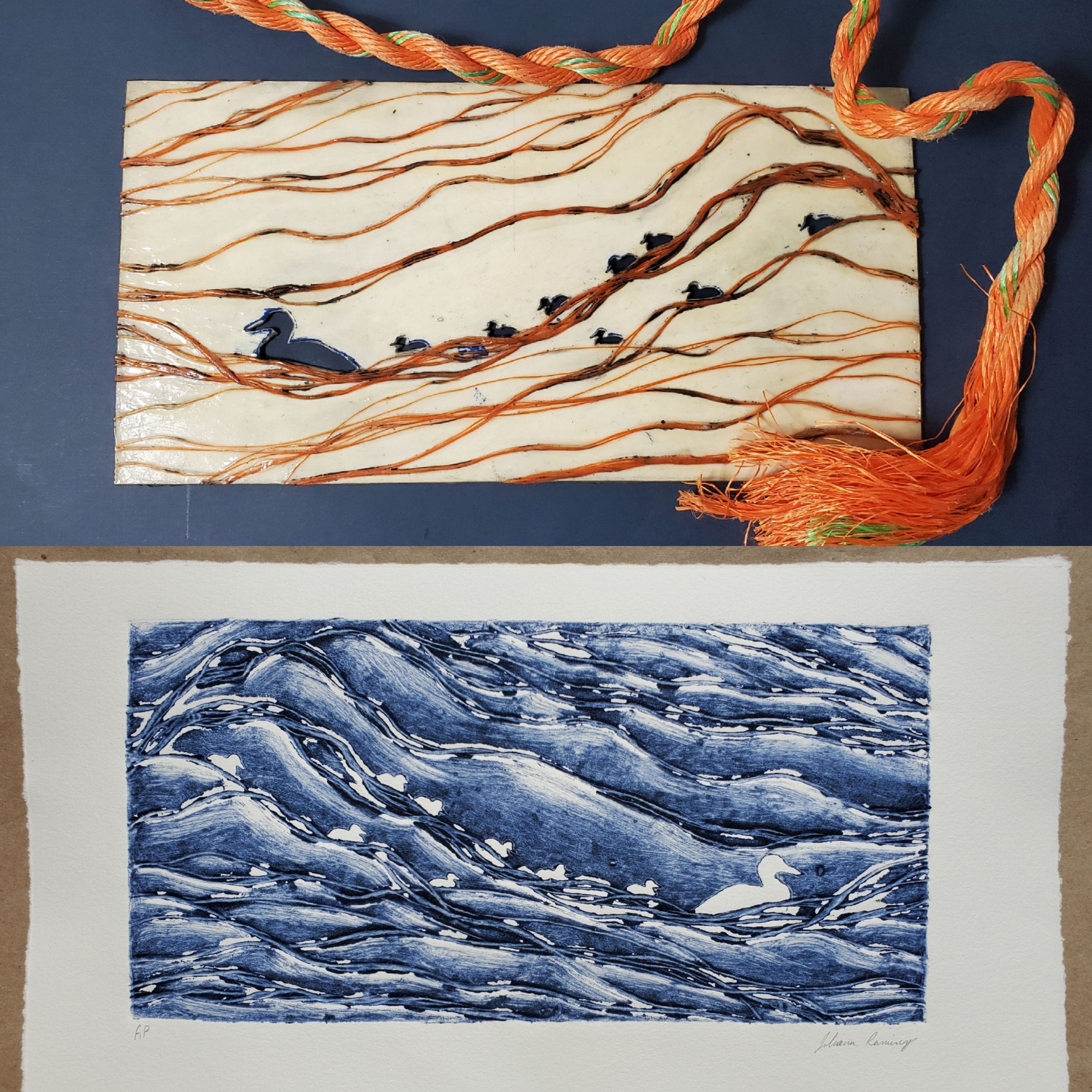 Starting to work with these alternative materials has made me realize that the “rules” that I learned while studying printmaking in school are optional, and much can be accomplished by pushing the limits of the medium. It’s been a real exploration as each piece of marine debris has its own quirks and characteristics, so I’ve spent time experimenting with relief, intaglio, and collagraph techniques.