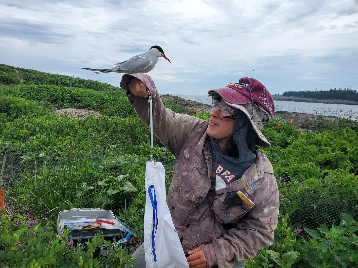 I've worked with almost all of the seabirds that nest in the Gulf of Maine: Common Terns, Arctic Terns, Roseate Terns, Least Terns, Atlantic Puffins, Black Guillemots, Razorbills, and Leach's Storm Petrels. Several of these are endangered, and Arctic Terns have the longest migration out of any animal in the world!